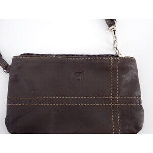 Born Brown Leather Logo Coin Brown Purse Wristlet Bag With Strap & Hook Small