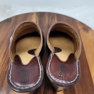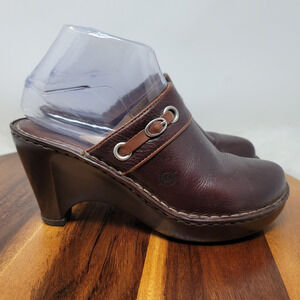 Born Brown Leather Slide In Clogs Heeled 4" Women Shoe 39 / US 8