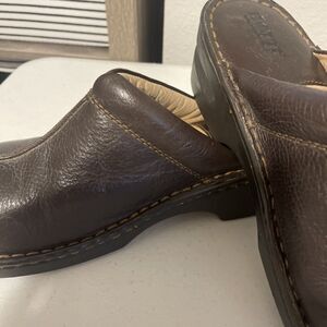 Born Brown Leather Slip On Mules Clogs Woman’s Size 10