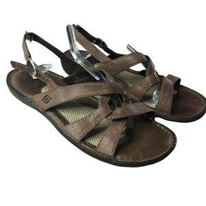 Born Brown Leather Strappy Sandals Open Toe Buckle Womens 10 u
