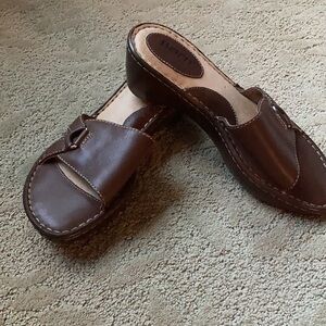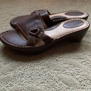 Born Brown Leather Wedges Sandals Size 6 memory foam and comfortable