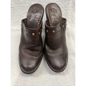 Born Brown Leather clogs mules 3” Heels W61251 studded Womens Size 9 Shoes EUC!
