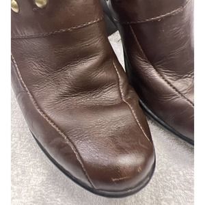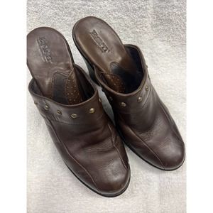 The Women's Size 9 shoes have a comfortable Mule style with a brown color that is versatile and stylish. The leather upper material and studded accents add a flair of sophistication to your look. Don't miss out on this opportunity to add these amazing Clogs to your shoe collection.