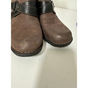 Born Brown Leather Ankle Booties Heels Womens Size 11 Belt Strap Clogs