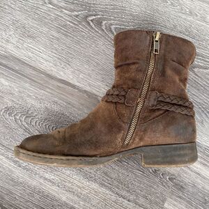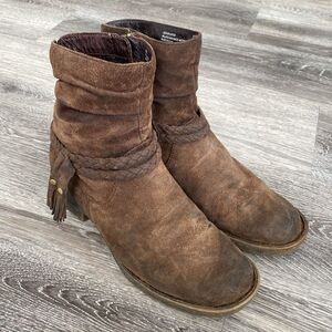 Born Brown Ouvea Leather Ankle Boots Braided Tassels Boho Slouchy sz 8 Boho