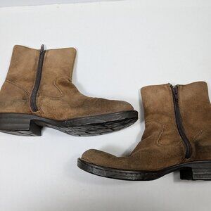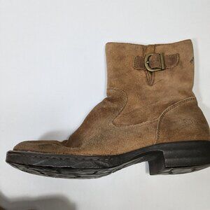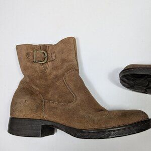 Born Brown Suede Ankle Boots Zip Side Buckle Accent Size 7.5M Boho Western