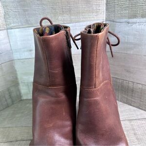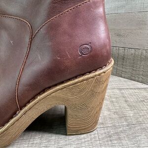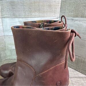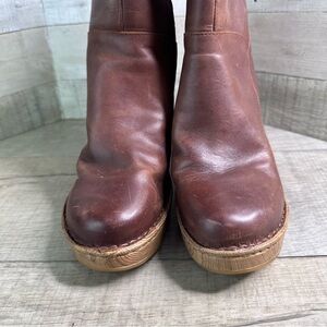 Born Capella brown leather platform lace-up mid calf heeled boots size 9.5