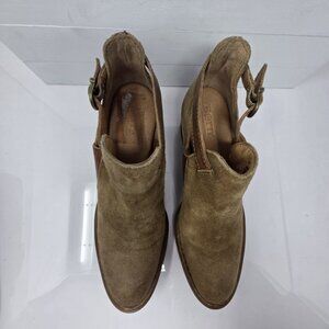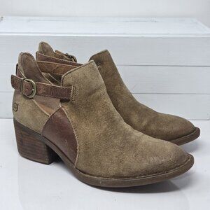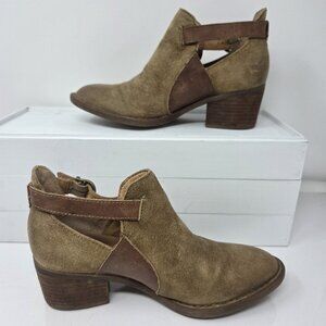Born Carin Suede Leather Ankle Booties Women's 6 Brown Buckle Strap Western Boho