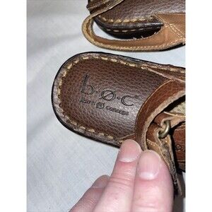 This womens brown pair of Born casual sandals has a tear/ separation on the side of left shoe. Probably easily stitched. Check out the pictures for full details! This item comes in a size 7 M Thanks for checking out our item!
