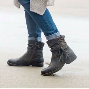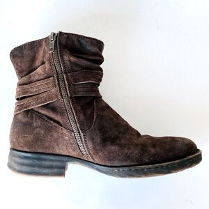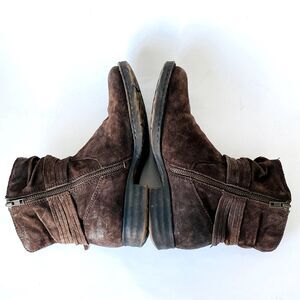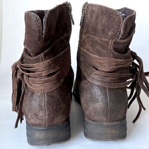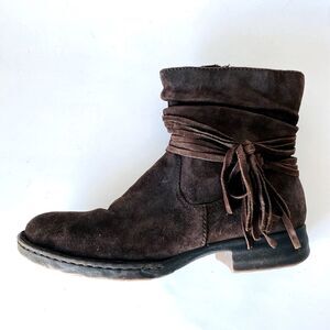 Born Chocolate Brown Suede Fringes Scrunched Ankle Boots Sz M Boho Festival