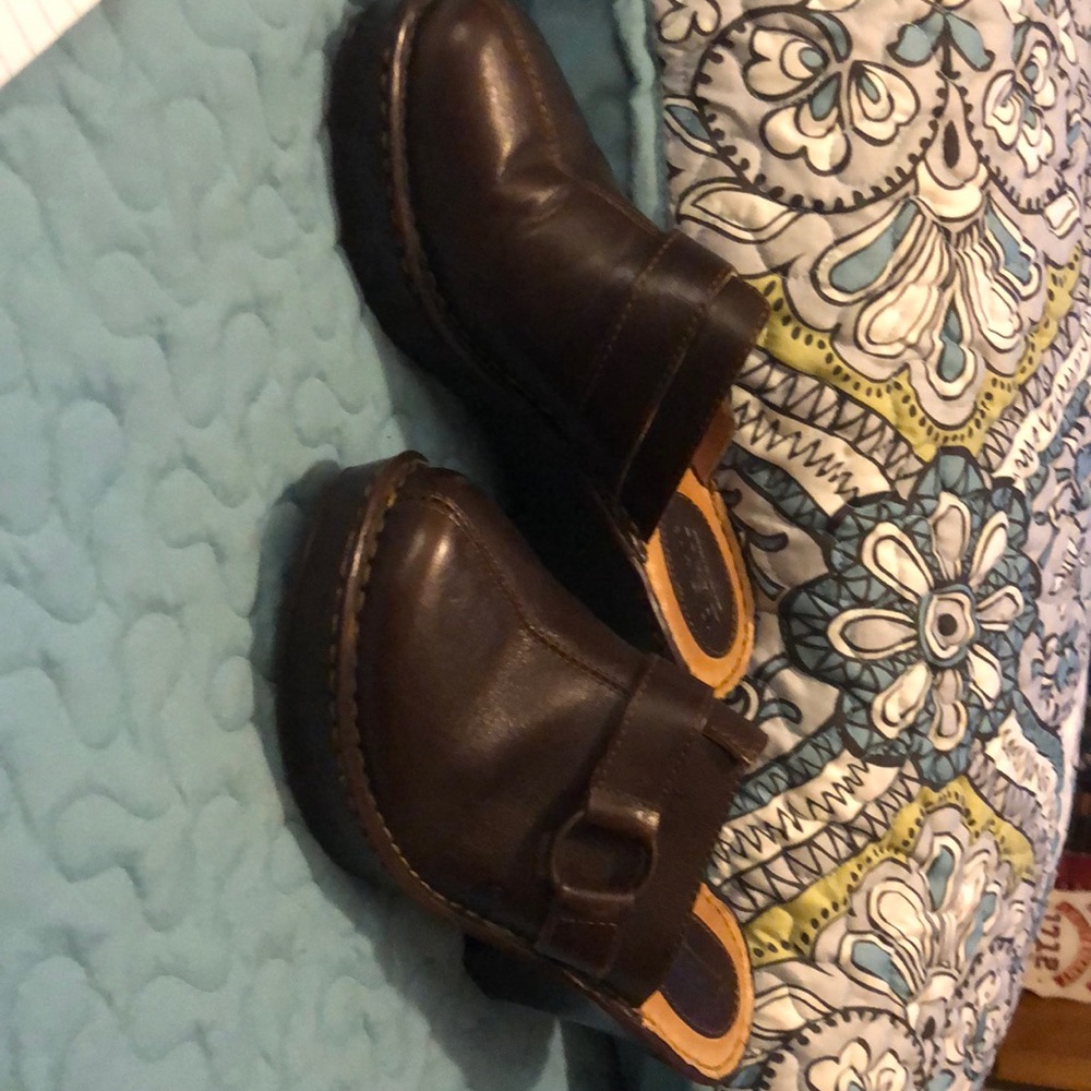 Brown slip on Born clogs