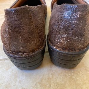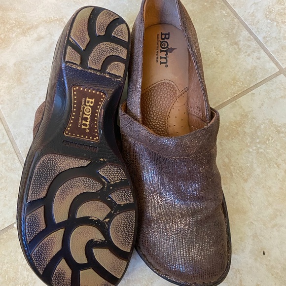 Sturdy pair of Born Toby clogs. Haven’t used them since skinny jeans! Good conditon inside and out. Color is a bronze/gold.