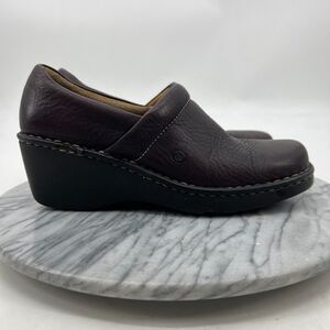 Born Clogs Womens 9.5 Brown Leather Slip On Wedge Heel Square Toe Work Shoes