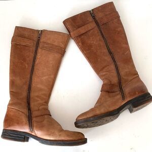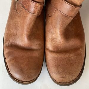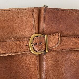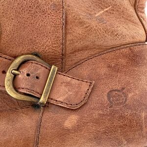 Born Cognac Brown Leather Heeled Boots Buckle Straps sz 8 Boho Chic Cottage Core
