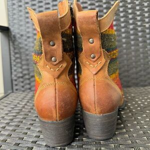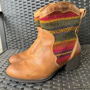 Born Cognac Leather Aztec Ankle Boots Women’s 6.5 / 37 Zip Western Boho Booties