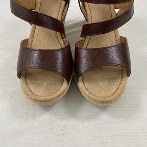 ITEM: Born Concept B.O.C. Brown Cork Ankle Strap Wedge Comfort Sandals Women's Size 9M