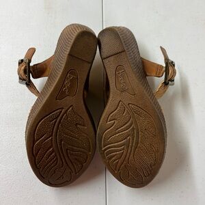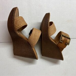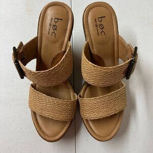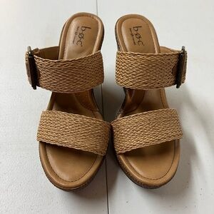 Stylish tan sandals with a woven strap design and adjustable buckle. Perfect for everyday comfort and style.