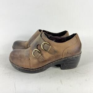 Born Concept Clogs Women's 7.5 Brown Leather Buckle Slip-On Comfort Shoes