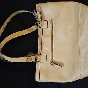 Stylish Born Concept tote in light tan. Features front pocket and secure closure. Ideal for daily use. Very spacious.