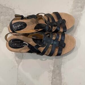 Born Concept b.o.c Slingback Strappy Cork Wedge Sandals Womens 10M Black Leather