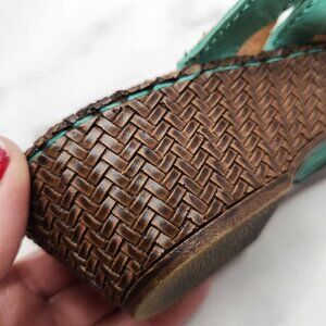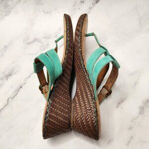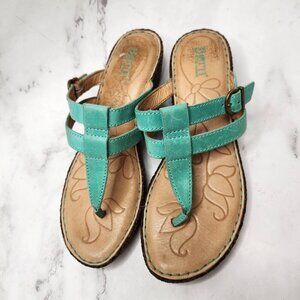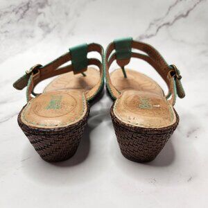 Born Concepts Leather Sandals Toe-Post Wedges Teal Strappy Women's 6