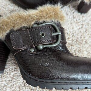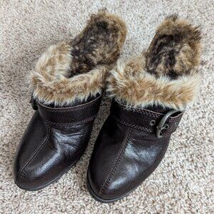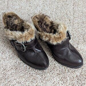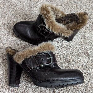 Born Concepts Mules Womens 7 Brown Leather Buckle Fur Lined Rugged Sole Comfort
