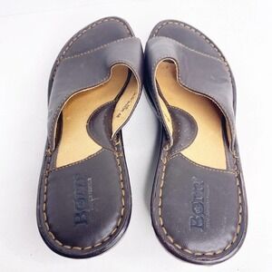 Born Concepts Sz 7 Womens Dark brown Leather Wedge Slip On Sandals