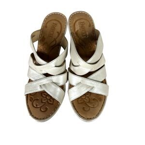Born Cream Leather Strappy Wood Stacked Chunky Heel Sandals Heels Size 8