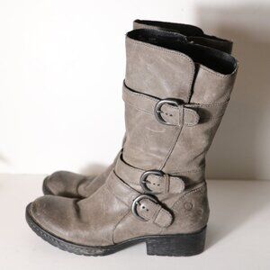 Born Croft 8 Boot Taupe Brown Leather Motorcycle Biker Side Zip Buckle Mid Calf