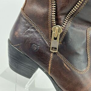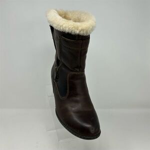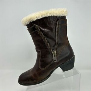 Born Danila Brown Leather Heeled Ankle Booties Size 7 Casual Winter Real Fur Zipper