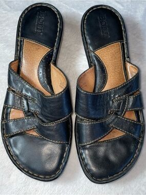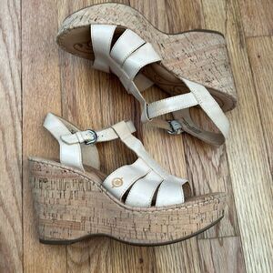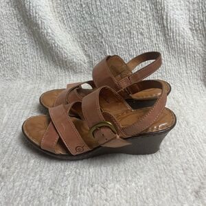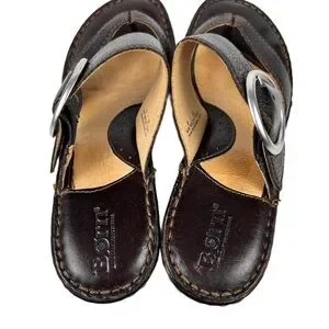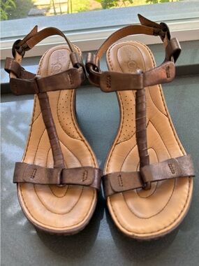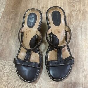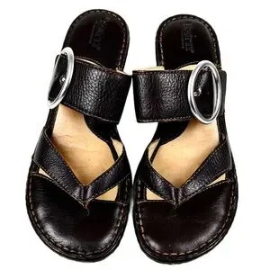 Born Dark Brown Leather Thong Wedge Sandal Size 8