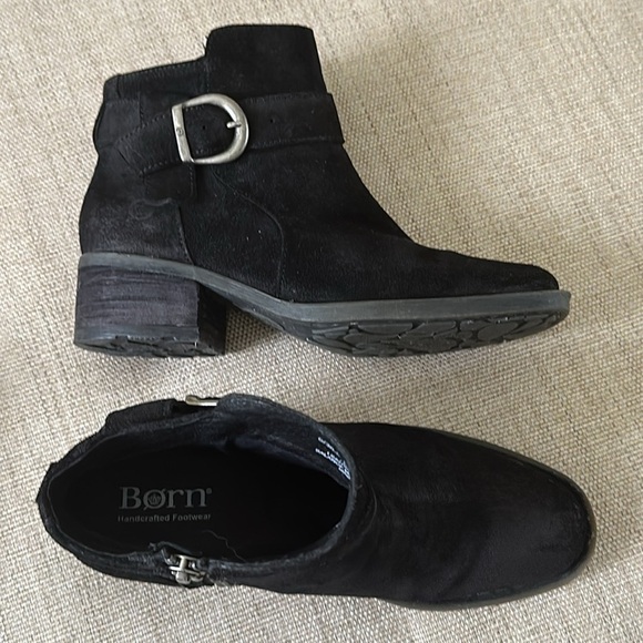 Born Distressed Suede Bootie Stacked Heel Side Zipper Buckle Detail Size 6/ 36.5