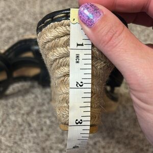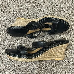 EUC Born Drilles British Black Leather Espadrilles Wedge Sandals Slip On size 10