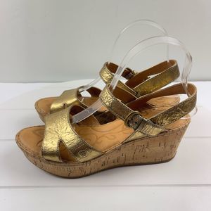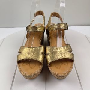 Born Du Jour Metallic Gold Cork Wedge Sandals D58310 9M Retail $100.00