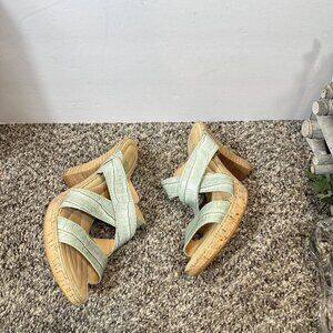 Born Emden Stacked Heel Sandals Women's Size 40.5 US 9 Strappy Sea Green