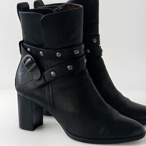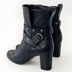Born Emma Buckle Moto Black Leather Booties Edgy Biker Block Heel Size 10 M