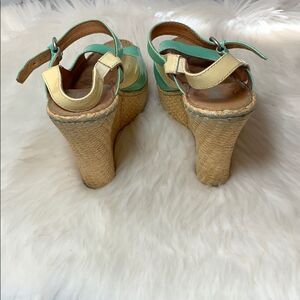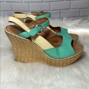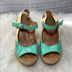 Born Espadrille Wedges Cream/Mint Patent Leather