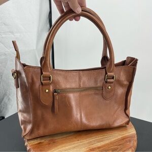 Born Eva Distressed Leather Satchel Light Purse zip closure bag brown