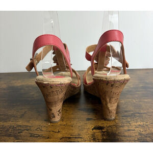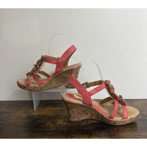 Born Evita Wedge Sandal Womens Sz 8M Coral Pink Leather Rosette Boho Peasant