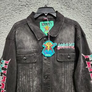 Born Fly Denim Jacket Mens 2XL (Fits as XL) Black Distressed Eagle Lightning NEW