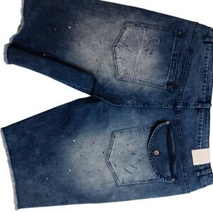 Born Fly Distressed Denim Shorts Size 38 Blue Paint Splatter Raw Hem