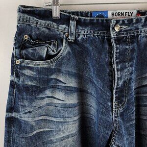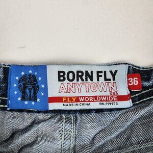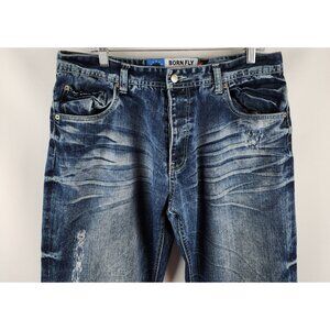 Born Fly Jeans Mens 36x34 Blue Anytown USA Button Fly Distressed Denim
