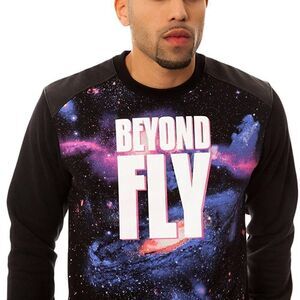 Born Fly Mens Galaxy Sweatshirt Faux Leather Elbow Patches Beyond FLy