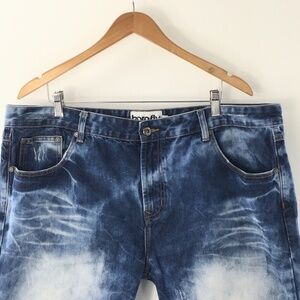 Born Fly Mens Jean Shorts Factory Fading Raw Hem Fringe Distressed Blue Sz 42
