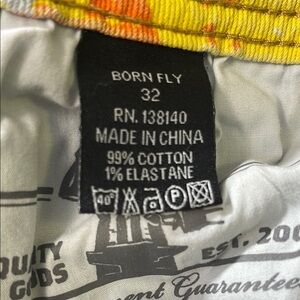 Born Fly Men’s Yellow and Red Art Patchwork Slim Straight Jeans Sz 34