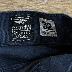 Born Fly Pants Mens 32 Straight Chino Button Fly 5 Pocket Streetwear Blue