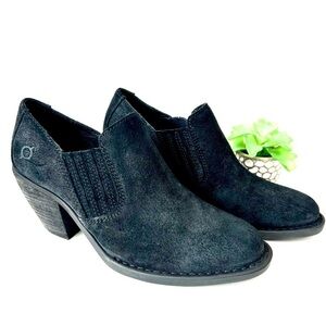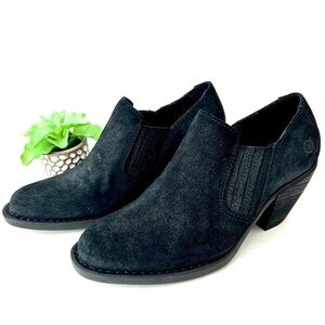 Born Fredrika Booties Black Suede Western Heeled Ankle Boots Size 6
