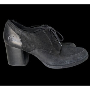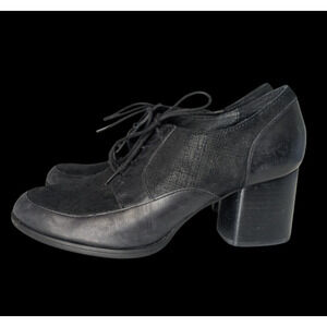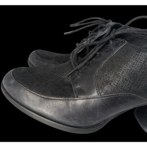 Born Gamber Black Leather Heeled Boots Size 9 Lace Up Bootie Y2K Fall Comfort