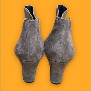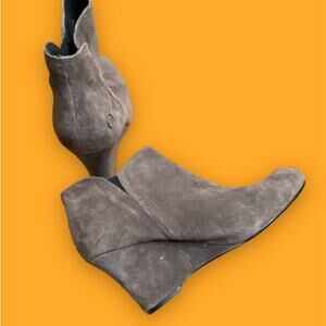 Born Genuine Suede Leather Pewter Gray Wedge Ankle Booties Size 8.5