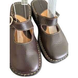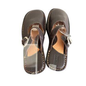 Born Girls Brown Leather Mary Jane Clogs Adjustable Buckle Strap Comfort